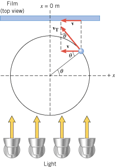 shadow that would be cast by the point moving around the circle on the horizontal line. See the diagram below: